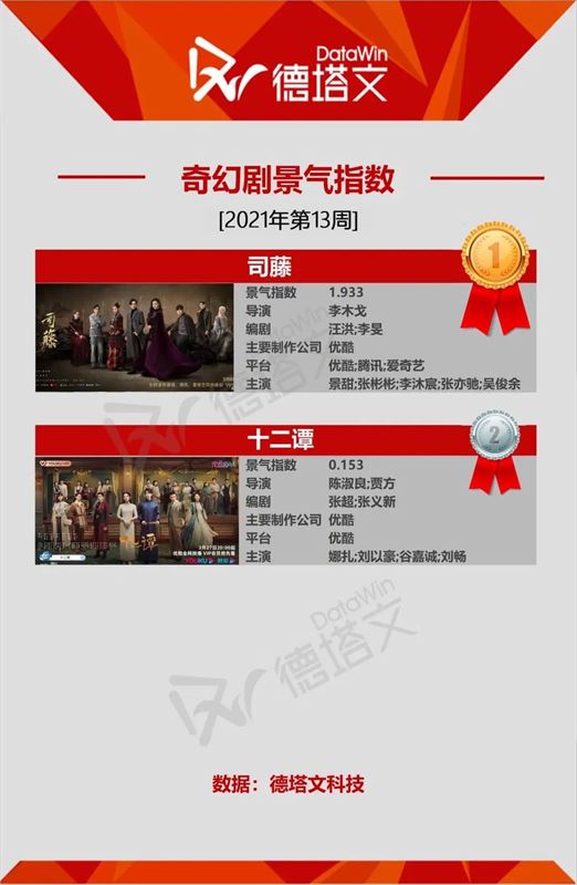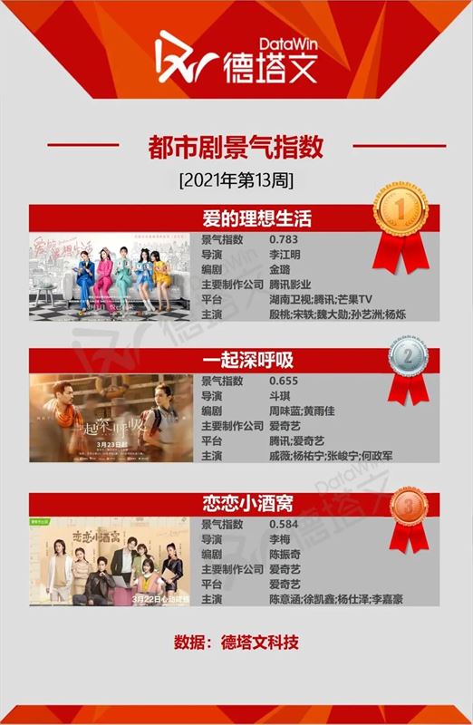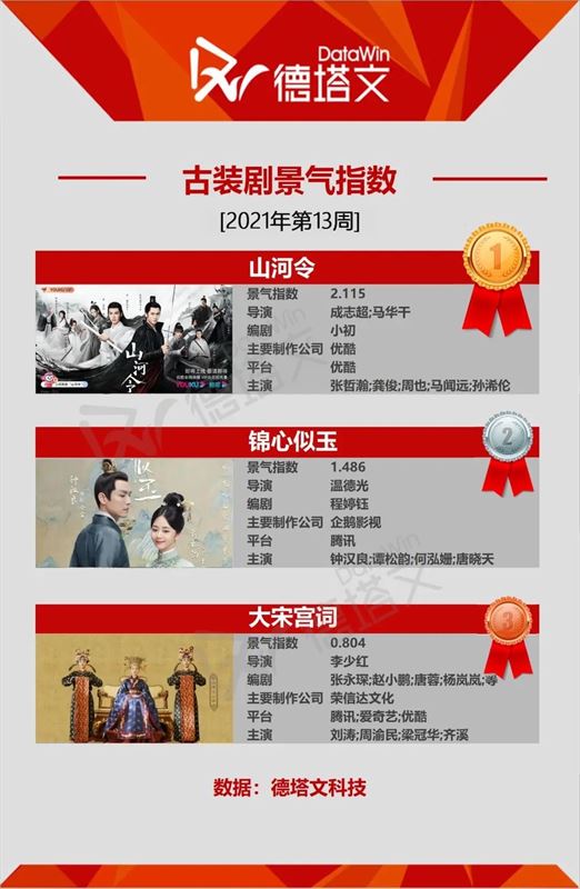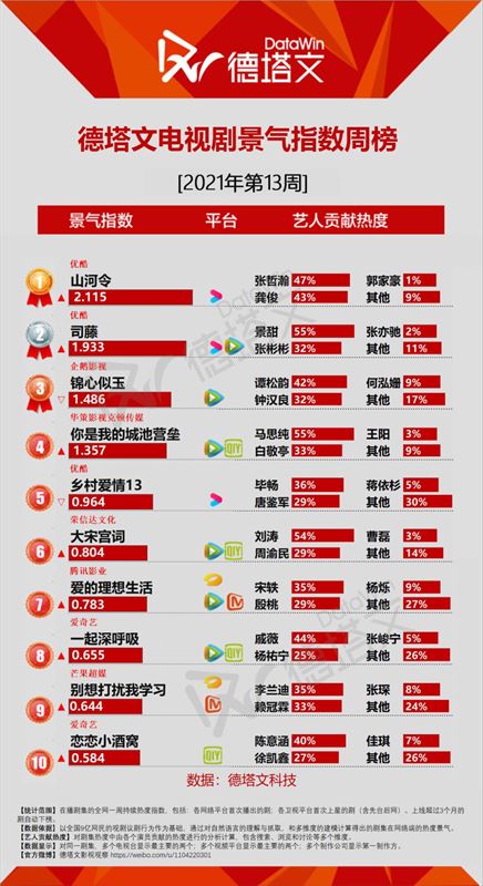 中国で市場分析を展開する德塔文科技による影視観察(datawinfilmtv)データより、2021年第13週(03.21-03.27)のドラマデイリー景気指数TOP10にランクインしたドラマを、ピックアップ!