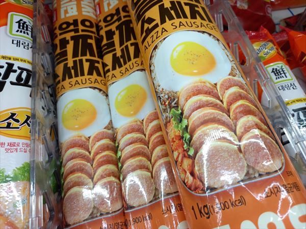 おかずはスパム(ハム、ソーセージ)、卵、キムチの3種が定番。スパムやキムチを炒めるときは、肉やイカ、野菜などが加わり、彩りにこだわる余裕があれば、豆類、ししとう、エホバク(애호박 ズッキーニのような野菜)などと小魚を炒めてグリーン色を、海苔を載せてブラックをプラスします。