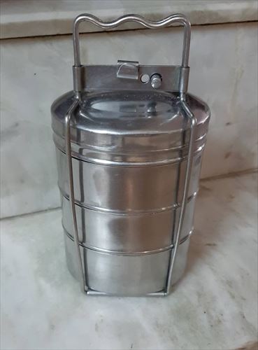 インドのお弁当箱の形状というと、このような3段ないしは4段のステンレスのお弁当箱を思い浮かべる方も多いかもしれません。