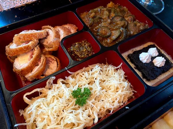 またレストランでも、いわゆるワンプレート的な感覚で、日本食以外の食事を提供するお店が、前菜、メイン、サイドディッシュ、デザートを、和の雰囲気あふれるデザインのお弁当箱にまとめて盛って提供したりもしています。