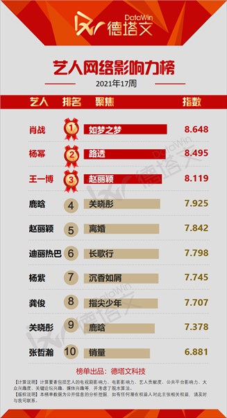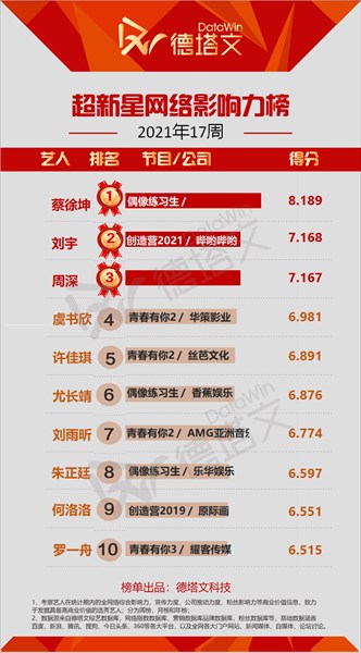 その他、超新星スターのネット影響力ランキングでは、話題のオーディション番組出身のフレッシュな面々がランクイン!