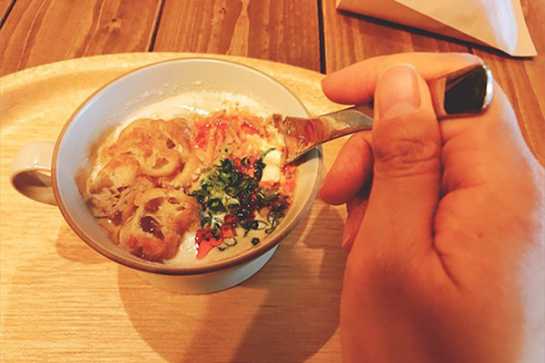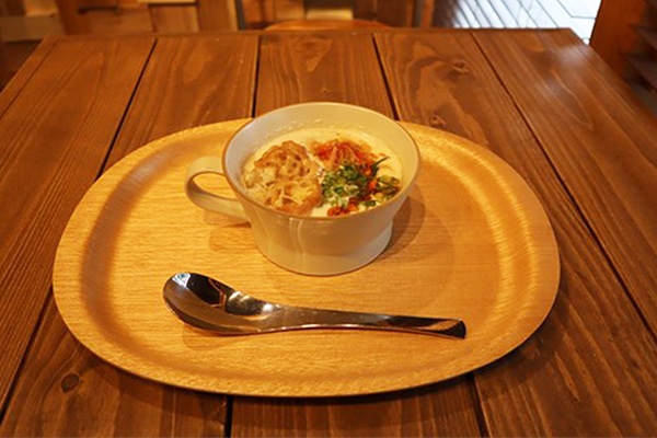 ローズさん まずは台湾の豆乳スープ、鹹豆漿からどうぞ。
