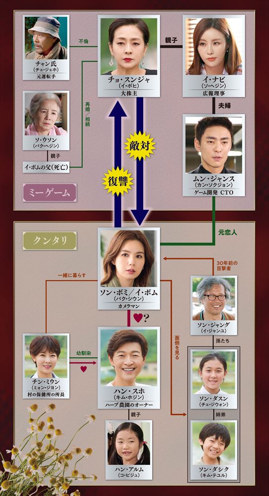 一方、財閥企業の大株主チョ・スンジャは、32年前に捨てた娘ボミが韓国にいると知らされ動揺する。過去の秘密を隠すため、スンジャは親切なフリをして彼女に接近し、あらゆる手段を講じて窮地に追い込もうと画策していたー。