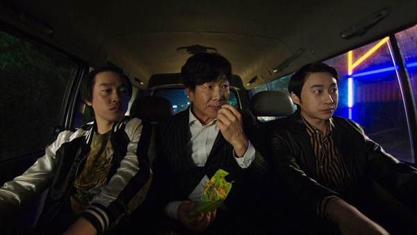 このように、韓国映画や歌謡曲を知っていればいるほど楽しめる趣向が、あちこちに仕掛けられています。出演者と縁の深いゲストも登場。大金の行方をマ室長に探させる会長役を、シン・ヒョンジュンが実名で務めて、コワモテながらハジけた演技を披露して笑わせます。