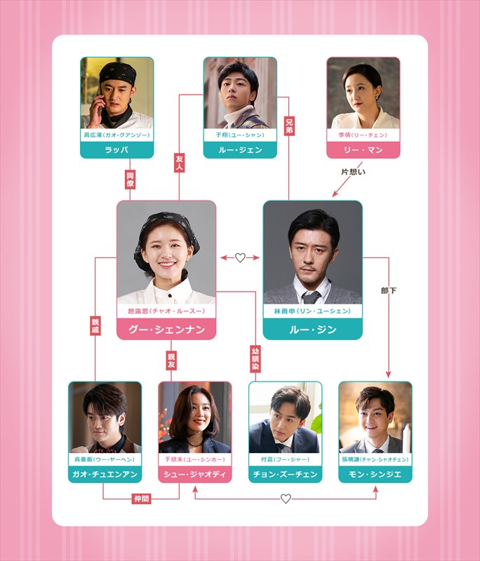 ルー・ジンの部下。もともと幼馴染だったこともあり、ルー・ジンからの信頼は厚い。グー・シェンナンの親友シュー・ジャオディに恋心を抱き始めるが・・・。