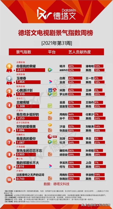 記事タイトル:「剧周报31|《你是我的荣耀》开播登顶,《玉楼春》成为市场唯一古装剧」