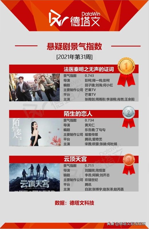 中国で市場分析を展開する德塔文科技による影視観察(datawinfilmtv)データより、2021年第31周(07.24-07.30)のドラマ景気指数TOP10にランキングしたドラマを、ピックアップ!第31週の調査で人気を獲得したドラマカテゴリーは、1位現代ドラマ、2位サスペンス、3位歴史ドラマという結果に。