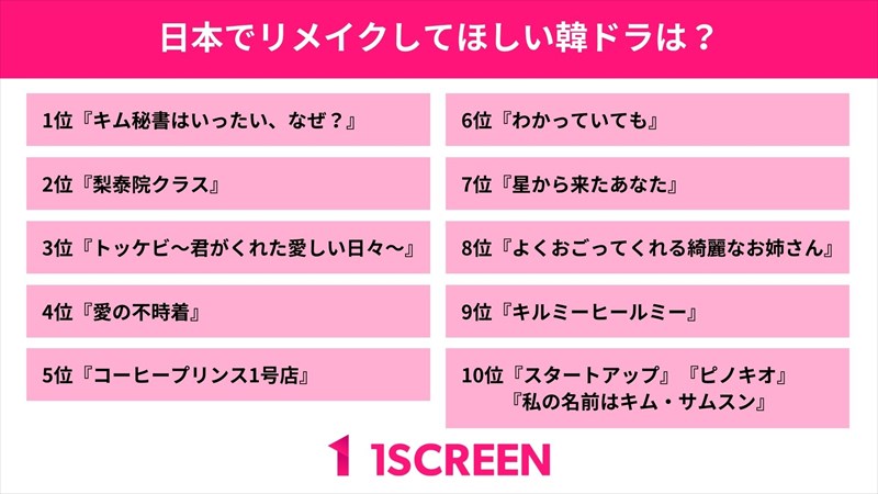 【400人に聞いた】日本でリメイクしてほしい韓国ドラマは?のアンケート結果を公開。3位「トッケビ」2位「梨泰院クラス」をおさえて1位になったのは?