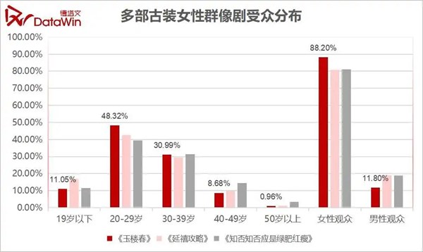 このドラマの主な視聴者層は、20〜29歳の女性であり、男性と女性の比率は約1:9。ここ数年でヒットしたドラマと比較すると、29歳以下の女性層が占める割合が「明蘭~才媛の春~」よりも高く、20~39歳の女性層の占める割合は「瓔珞<エイラク>〜紫禁城に燃ゆる逆襲の王妃〜」よりもわずかに高くなっていた。