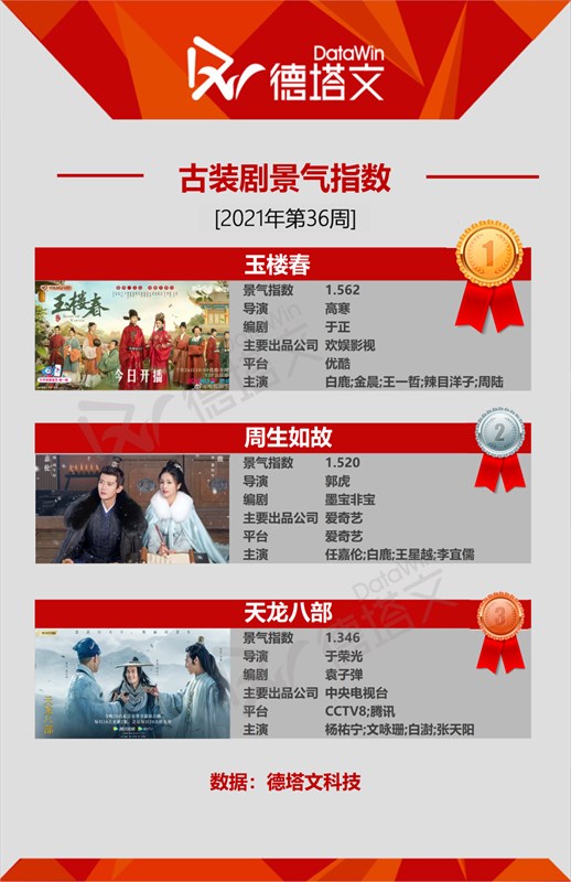 中国で市場分析を展開する德塔文科技による影視観察(datawinfilmtv)データより、2021年第36周(08.28-09.03)のドラマ景気指数TOP10にランキングしたドラマを、ピックアップ! 第36週の調査で人気を獲得したドラマカテゴリーは、1位時代劇、2位サスペンス、3位年代劇という結果に。