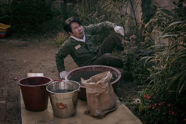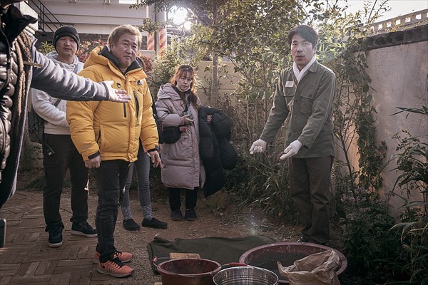 一方、自宅軟禁された政治家イ・ウィシクを演じたオ・ダルスが、自宅の塀によじ登って尻餅をつくシーンの写真も切り取られている。このシーンでは、ひょんなことから塀をよじ登ったイ・ウィシクと、隣家でこっそりと監視を続けていた諜報員のユ・デグォンが、図らずも出くわしてしまい “お隣さん”として挨拶を交わしたことから、本来なら直接交わることのなかった監視する側/される側の不思議な交流が始まる重要なシーン。