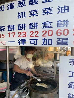 ローズ そうなんです。この屋台では様々なものを売っているので蔥抓餅はトッピング無しか卵トッピング(台湾華語では「加蛋」(ジャダン)と言います)の二択ですが、蔥抓餅専門店だとツナ、コーン、練乳、ハム、チーズやバジルなど、色んな味の選択肢があるんです。
