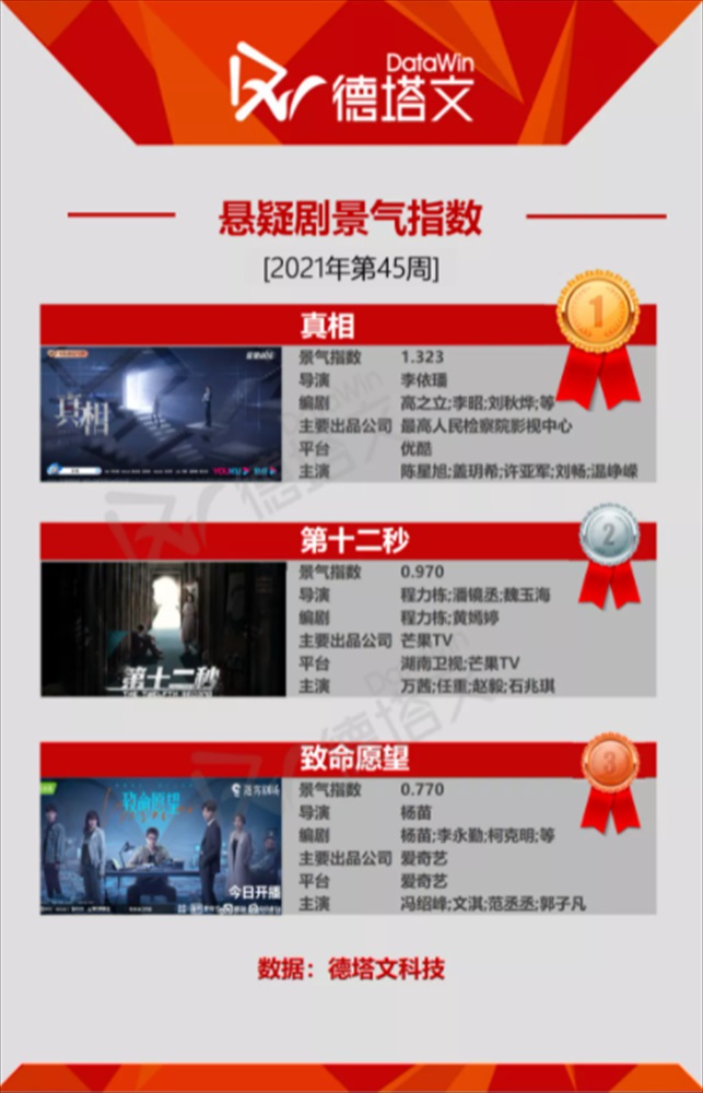 「第十二秒」は現在好評を博している。同名小説を原作とし、復元力の高い作品となっている。プロットは子どもの人身売買や麻薬の売買、校内暴力などの社会的焦点を同時にカバーするだけでなく、サスペンス要素とも比較的密接に作られていて、複数の伏線の交差、現実の交差、記憶、などが最終的に大きなつながりをもたらすことになる。また、劇中の夫婦、親子、養子縁組などの描写は、社会の暗い側面に暖かさと涙をもたらし本作のレベルを豊かにしている。