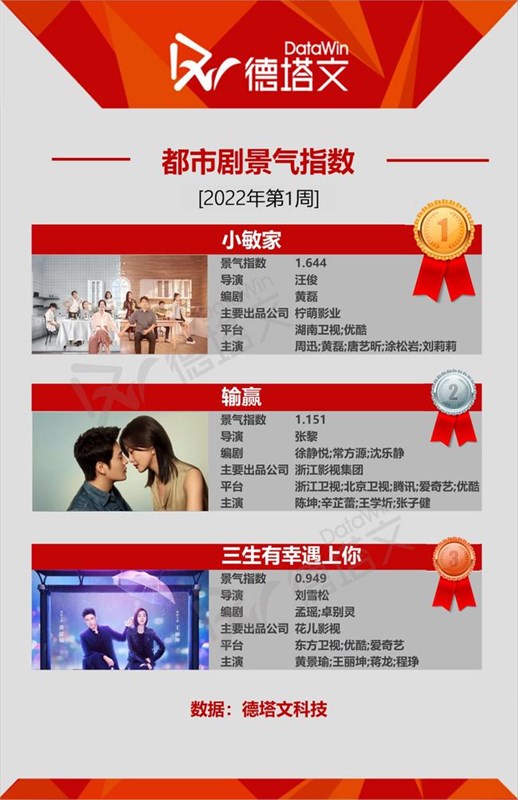 中国で市場分析を展開する德塔文科技による影視観察(datawinfilmtv)データより、2022年第1周(01.01-01.07)のドラマ景気指数TOP10にランキングしたドラマを、ピックアップ! 第1週の調査で人気を獲得したドラマカテゴリーは、1位現代ドラマ、2位サスペンス、3位時代劇という結果に。(以下ドラマ表記名は全て原題)