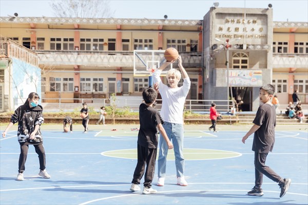 アーロンは会見で、新竹市尖石郷にある新光集落に赴き、地元の子どもたちと過ごしたひと時の体験を語った。当日はまず子どもたちに自分を「アーロン」と呼ぶようにと気さくに自己紹介。子どもたちは親切なお兄さんの訪れを喜び、「お兄ちゃん、大好き」、「一緒に遊ぼう」と積極的にアーロンの手を引っ張り、校内を駆け巡る。アーロンは、「子どもたちと一緒にバスケットボールをして一緒に笑っていると、確かに共に過ごすこと自体のパワーを感じる」と当時を振り返った。