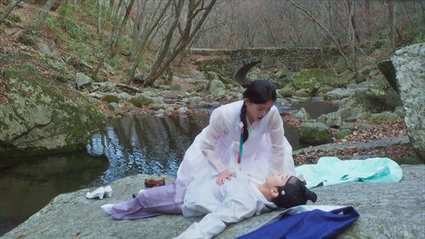 実はヘソンは男で、命を助けてくれたチェ・ジンサの配慮で、女装し身分を隠していたのだ。元々ミン家の使用人サルビョルだった彼は、ミン家の息子であるソユンに可愛がられ気楽な毎日を送っていたが、息子が使用人に異様な関心を示しているのをよく思わないミン大監がサルビョルを殺すよう命令。命の危険から逃げている時にチェ・ジンサに助けられ今に至る。彼には、女装したまま徙民政策(用語解説③)によって北の方に行き、使用人という自分の身分の変えることしか選ぶ道がないわけだ。
