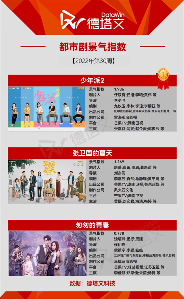 記事タイトル:「剧周报30|《少年派2》青春+家庭题材覆盖广泛大众,年轻化流量剧集占据头部」