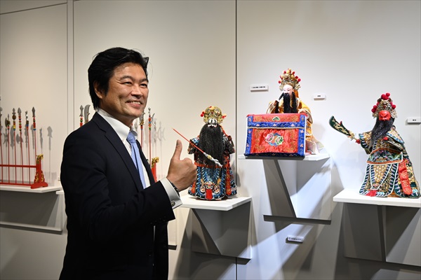 三国演義の布袋戯人形と李世丙・駐日副代表(左)