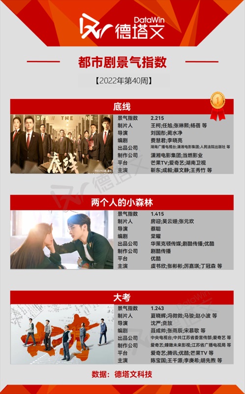 中国で市場分析を展開する德塔文科技による影視観察(datawinfilmtv)データより、2022年第40週のドラマ景気指数TOP10にランクインしたドラマを、ピックアップ! 第40週の調査で人気を獲得したドラマカテゴリーは、1位現代ドラマ、2位サスペンス、3位青春ドラマという結果に。(以下ドラマ表記名は全て原題)
