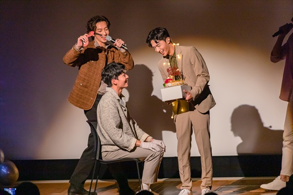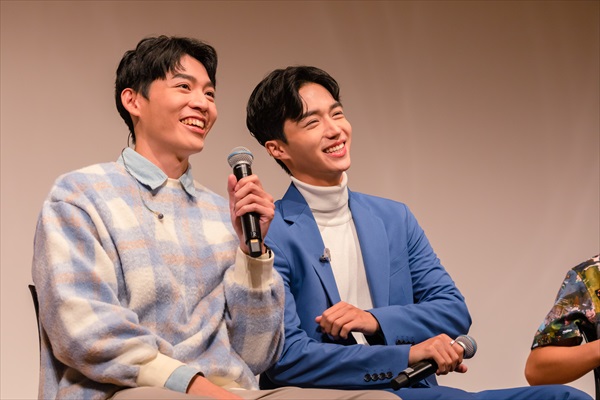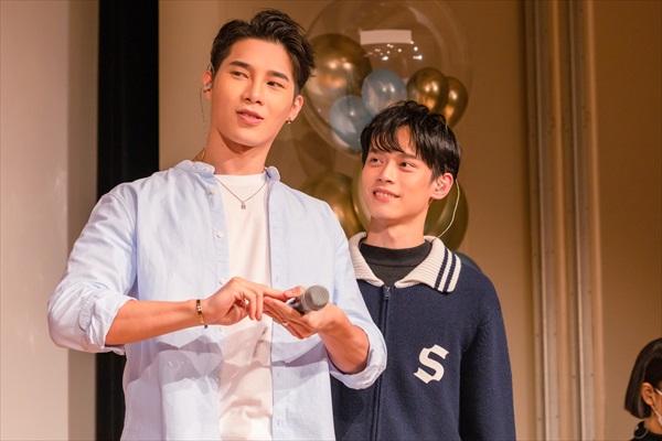 これまで静かに鑑賞していたアーロンとハンクは、主演作「Be Loved in House約・定~I Do」で自分たちのキスシーンが流れると、途端に照れ顔に。「最後のキスシーンの撮影だったので嬉しかったです。撮影進度が予定より順調だったので、6、7回角度を変えて撮りました」と語った。撮影当日は、ハンクの24歳の誕生日を祝うサプライズがあったそう。アーロンは「自分の誕生日が24日なので、24繋がりで縁を感じました」と話した。