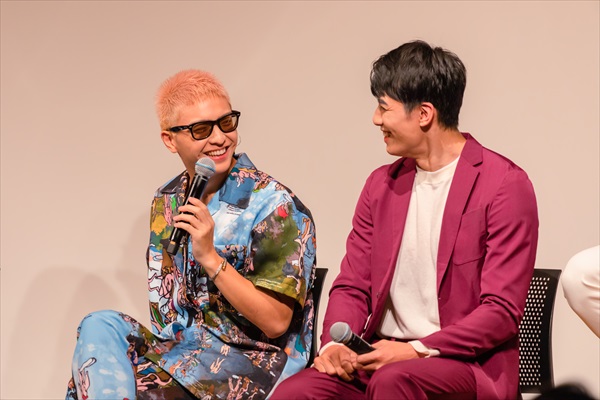 他CPのキスシーンでは、色っぽい声でアテレコするなど散々冷やかしてきたウェイン。主演作「HIStory3 那一天~あの日」のキスシーンが流れると、スクリーンの前で腕を大振りし照れ隠しする仕草を見せつつ、「最初から最後までの長いテイクを何度も撮り直したので、最後のほうは母親役のユー・ズーユー(于子育)さんがスマホで私たちを撮っていました」と明かした。またジュンジーが「唇がしびれて、眩暈がするまで何度もキスをしました」と当時の苦労を語ると、ウェインも「雑音が入らないよう、窓を閉めクーラーも止めて撮影したので、とても暑かったです」と、状況を補足した。