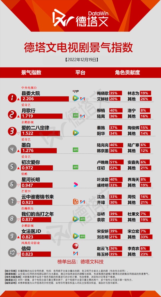 中国で市場分析を展開する德塔文科技による影視観察(datawinfilmtv)データより、ドラマデイリー景気指数TOP10にランキングしたドラマを、ピックアップしてご紹介!(以下、ドラマタイトルは全て原題の表記です)