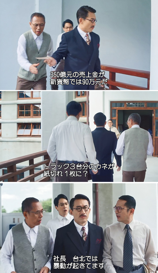 また、経済面でも大きな事件が。一夜にして「 “4万台湾ドル” が “1新台湾ドル” になる」という通貨の切り替えが行われ、経済に混乱をきたしたのです。ドラマでもヒロイン父が経営する「日光」が多大な打撃を受け……。