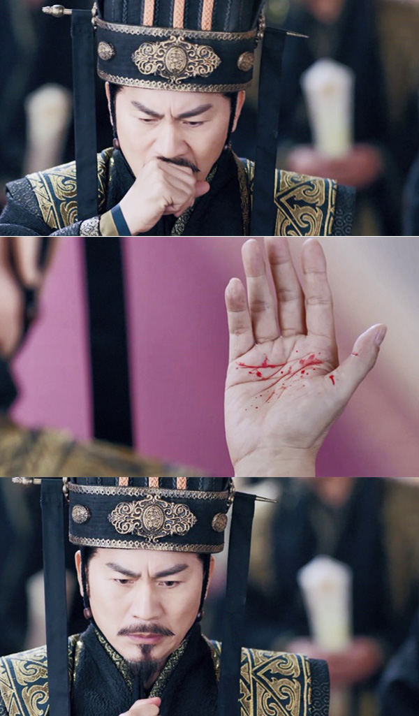 「霜花の姫~香蜜が咲かせし愛~」より。毒を盛られ、死の直前に大量に吐血する錦覓。
