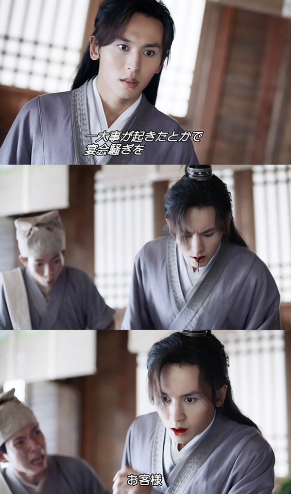中国ドラマにおける体調不良由来の吐血は、「病弱な人物」「病を得て病状が悪化」の描写であることが多いです。また死期の暗示であることも。