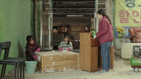 この度解禁された追加場面写真では、ギウ一家とヨンソンが対立する物語の転換点となる重要な場面や、地図を広げ次の目的地を確認するギウ一家の様子や、サービスエリア脇の垣根の裏にテントを建て、家族4人で眠る様子などが切り取られている。一方で、ヨンソンと暮らすことになった妻と二人の子供たちが食卓を囲む様子や、中古家具を洗い、ヨンソンの仕事を手伝う様子も切り取られており、その対照的な暮らしぶりが伝わる場面写真となっている。