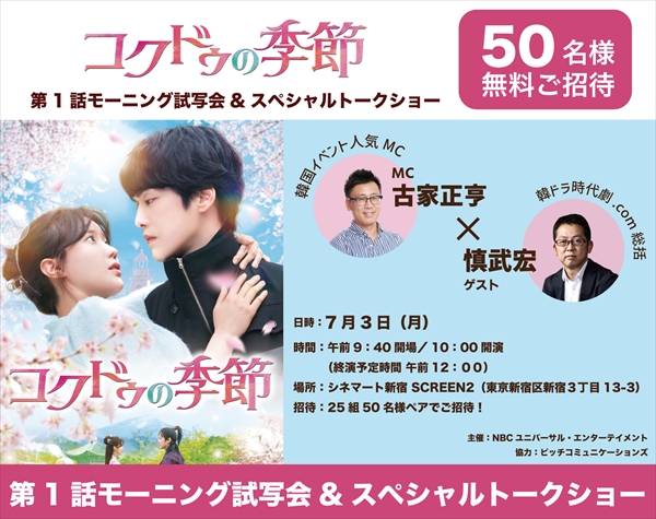 韓国ドラマ「コクドゥの季節」の第1話モーニング試写会&スペシャルトークショーが、7月3日(月)に東京・シネマート新宿で開催されることが決定した。