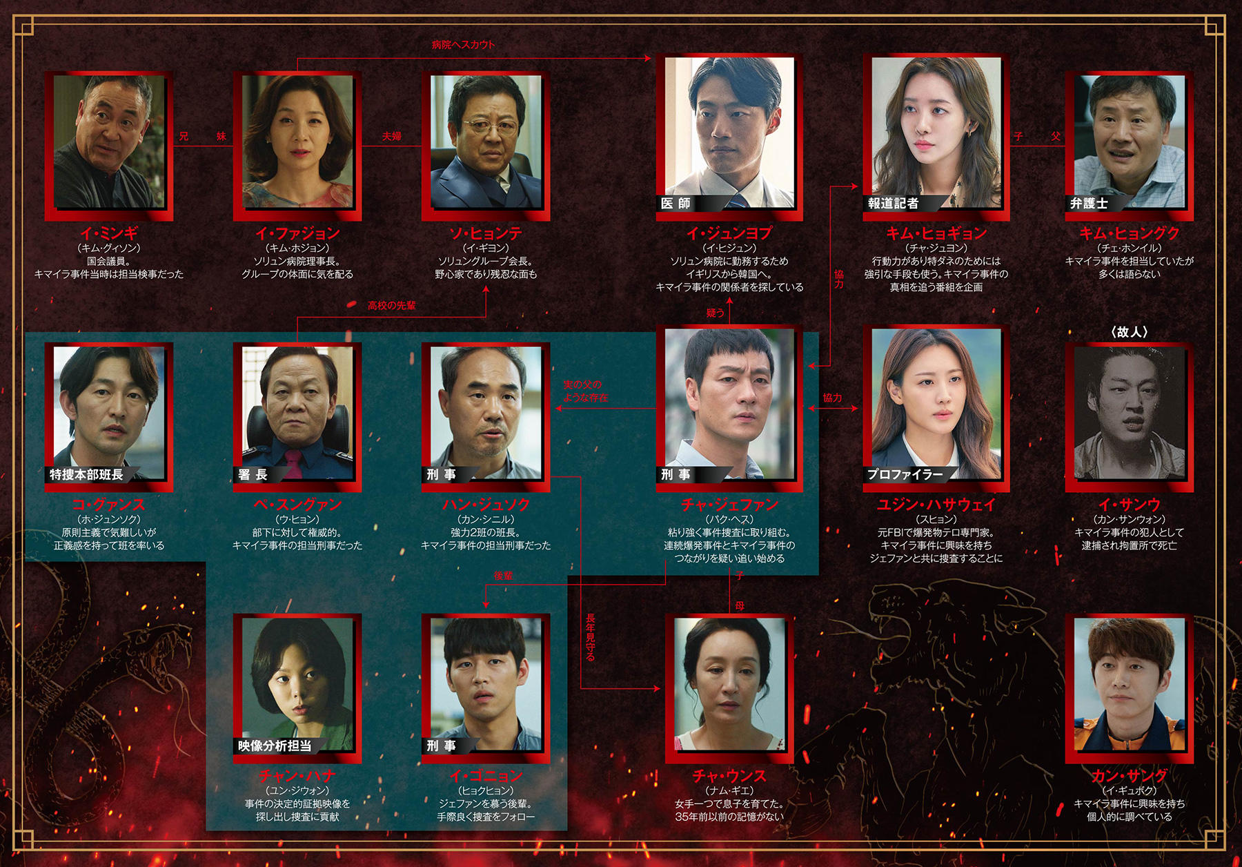 35年前、社会を騒がせた連続爆発殺人事件“キマイラ事件”。ある日、キマイラ事件とそっくりの謎の爆発事件が発生する。その事件を追う刑事、外科医、FBIプロファイラー、報道記者。それぞれが“キマイラ”の真実を追うことになる…。35年前の“キマイラ事件”の真相とは? そして新たな“キマイラ事件”との関係は? 物語が進むほどに複雑に絡み合う真実とそれぞれの想いとは…。約130億ウォンをかけ制作された、最後まで目が離せない本格クライム・サスペンス!