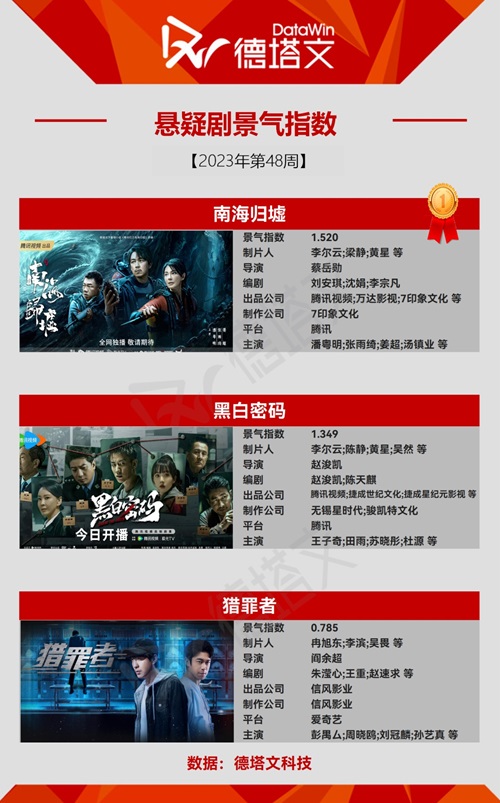 今週「南海帰墟」が公開され、ジャンルの市場認知度は上昇したが、イェン・イークァン(厳屹寛)らが出演する「宣判」が終了し、ドラマの数量が減ったことで、景気減少に影響を与えている。