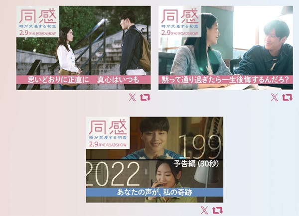 本作の公開を記念して、『同感~時が交差する初恋~』感想コメント投稿キャンペーンがスタート! 公式Xをフォローして、下記の好きなビジュアルや動画とともに指定のハッシュタグ「#同感感想」をつけて、映画の感想コメントをポストすると、30名様に『同感〜時が交差する初恋〜』特製クオカード(500円)をプレゼント。