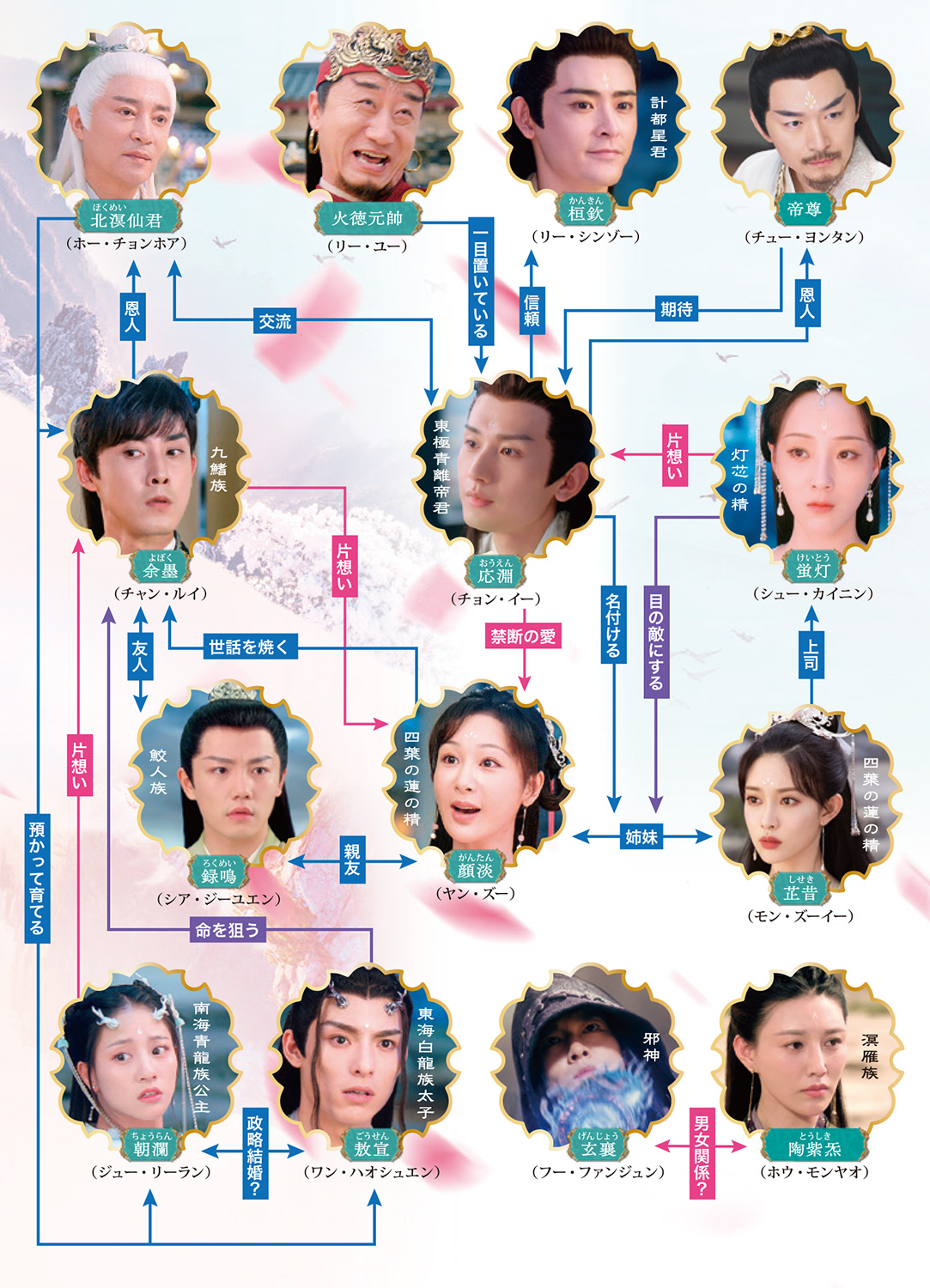癒しの力があるという上古遺族の四葉の蓮に咲いた 2 輪の花が仙界で人の姿となり東極青離帝君・応淵(おうえん)によって姉は芷昔(しせき)、妹は顔淡(がんたん)と名付けられる。それから 500 年。霊力の弱い芷昔は懸命に仙法の修練を続けて妙法閣・副主事となり、霊力が強い顔淡は出世に興味を持たずに北溟(ほくめい)仙君の下で魚の餌係として気ままに暮らしていたが……。