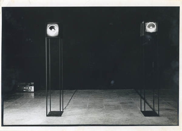 リー・グァンウェイ(李光暐) 《共生》 1993年 CRTモニター、スピーカー・ドライバー、キャビネット、ラック