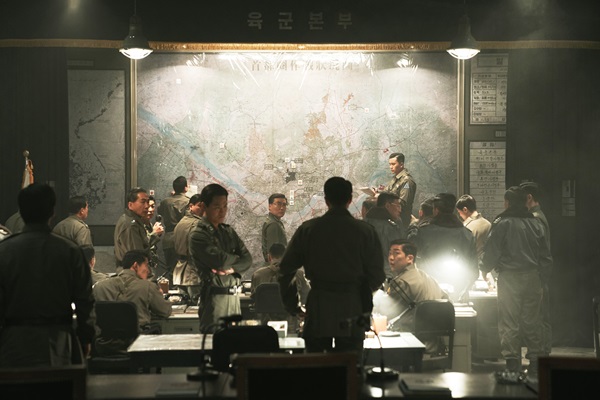 あわせて解禁となった場面写真からは、9時間の攻防に身を投じるイ・テシン、チョン・ドゥグァン両陣営の様子が映し出されている。