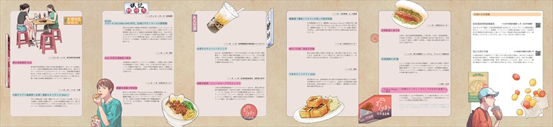 今年は、台湾漫画家韋蘺若明(イリ ジャクメイ)氏による魅力的なイラストで、魯肉飯(ルーローハン)、タビオカミルクティー、臭豆腐(しゅうどうふ)、刈包(台湾式ハンバーガー)、地瓜球(ディーグゥアーチョウ)などの台湾のグルメと町の風景をメインテーマに制作された。