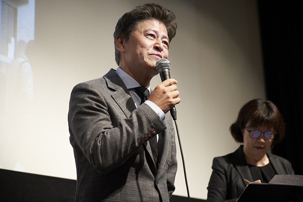 まずクォン・ヘヒョ氏が「20年前に『冬のソナタ』で来た東京に、またこのような形で来ることが出来て嬉しいです。ホン・サンス監督の作品を通して、皆さんとまたお会いすることができて、本当に光栄です」と挨拶。さらにホン・サンス監督から特別にメッセージが到着し、「私たちが作った映画を今日観に来てくださった観客の皆さんに心から感謝いたします。私が自らご挨拶に行けなくて残念ですが、クォン・ヘヒョさんは映画の主人公であるだけでなく、私と一緒に多くの映画を作った素晴らしい俳優ですので、皆さんと楽しくお話できると信じています。私たちの映画に関心を寄せてくださった皆さんへ改めて心から感謝をお伝えします」と代読すると、観客から大きな拍手が沸き起こった。クォン氏は「昨日、ホン・サンス監督から届いて、私から読んで欲しいということでしたが、自分で読み上げるのはとても恥ずかしくてできませんでした」と恥ずかしそうに微笑んだ。