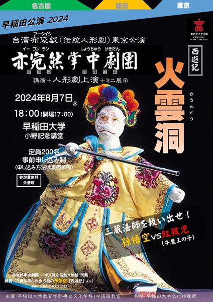 「台湾布袋戯(伝統人形劇)の世界<講演+公演+ミニ展示>」が、2024年8月7日(水)に早稲田大学にて開催。