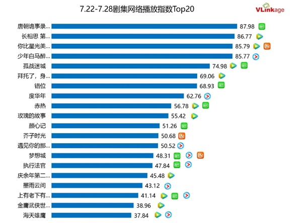中国のエンターテインメントデーター「Vlinkage」による2024年7月22日~7月28日のネット放送指数のランキングを、ピックアップ! (以下ドラマ表記名は全て原題)。