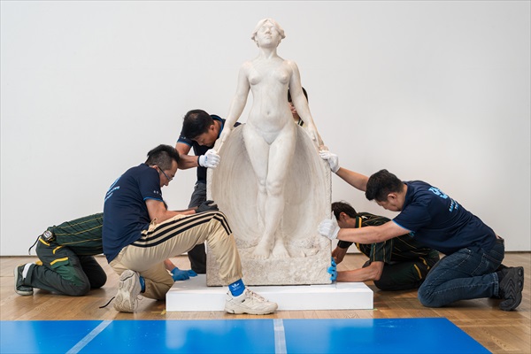 国宝が日本で安全に展示されるために、国立台湾美術館はまず「甘露水」の輸出梱包を最高水準の安全仕様によってオーダーメイド設計し、国宝やその他の展示作品が会場の環境に適応するのに十分な時間を与えるため、日本に到着後48時間は展示スペースに安置し、本日開梱され、良好な状態であることを確認。東京藝術大学は、会期中の国宝の安全を確保するため、展示に関わる動線、安全管理、運搬、会場の温湿度管理、作品展示台の固定などの対策を講じ、厳重な態勢で臨んでいる。