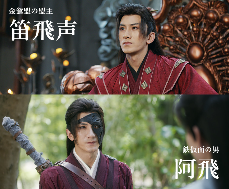 無法者たちが集まる金鴛盟は四顧門と敵対していた組織。 10年前、盟主だった笛飛声は李相夷との対決に臨みました。 その結果、相討ちとなってダメージを負った彼は、密かに療養生活を送ることに。 そして今、笛飛声は再び金鴛盟の盟主の座に返り咲きます。 そんな彼がひょんなことから李蓮花の道連れとなり、仮面を着けて阿飛という名で行動を始めますが……。