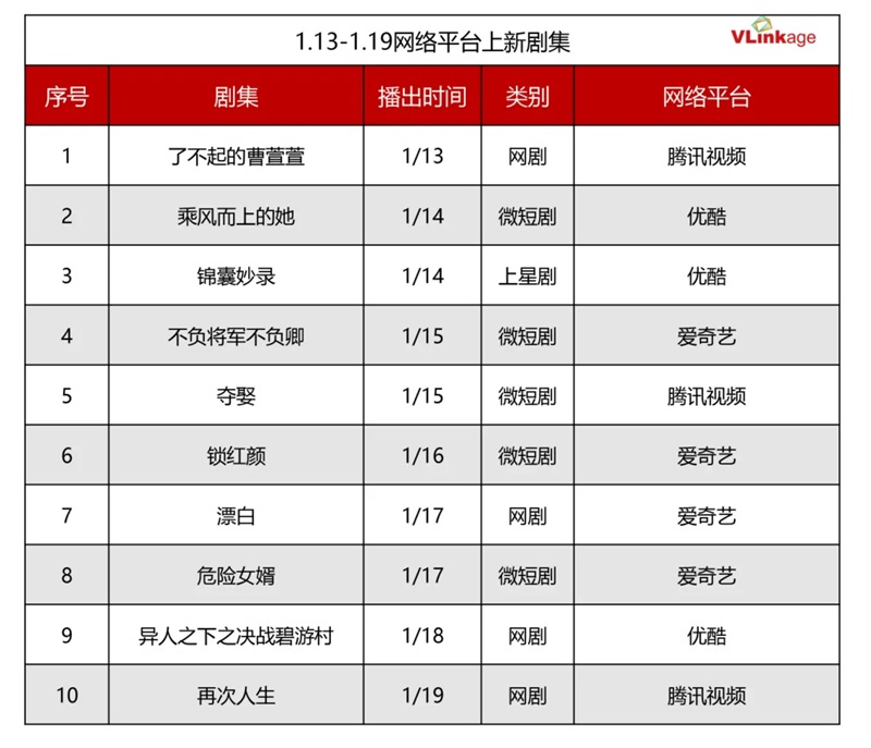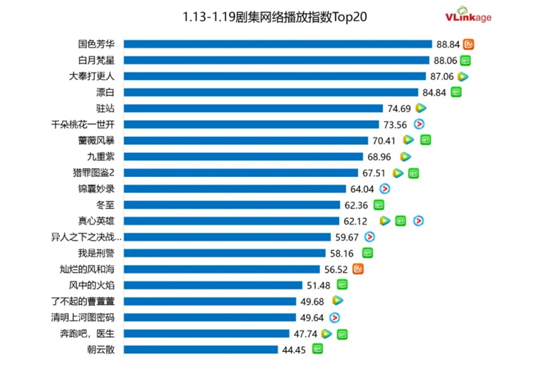 中国のエンターテインメントデーター「Vlinkage」による1月13日~1月19日のドラマ配信指数のランキングを、ピックアップ! (以下ドラマ表記名は全て原題)。