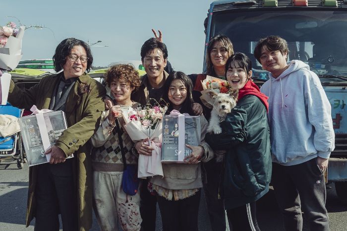 さらにイ・ソンギュン、チュ・ジフン、キム・ヒウォンら主要キャストとキム・テゴン監督の集合写真も到着!その笑顔から和やかな撮影現場だったことが伺える。キャスト・制作陣が一丸となって作り上げた本作をぜひ劇場で!
