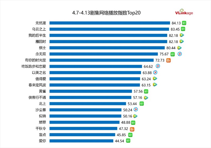 中国のエンターテインメントデーター「Vlinkage」による4月7日~4月13日のドラマ配信指数のランキングを、ピックアップ! (以下ドラマ表記名は全て原題)。