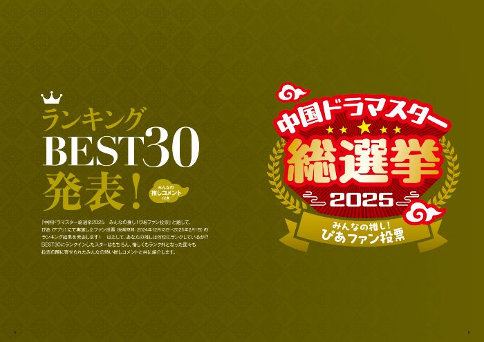 「中国ドラマスターが好き! みんなの推しランキング」誌面 2024年12月末~2025年2月にかけて実施したファン投票企画「中国ドラマスター総選挙2025 みんなの推し!ぴあファン投票」特集てに結果発表