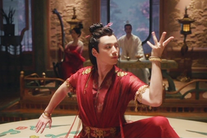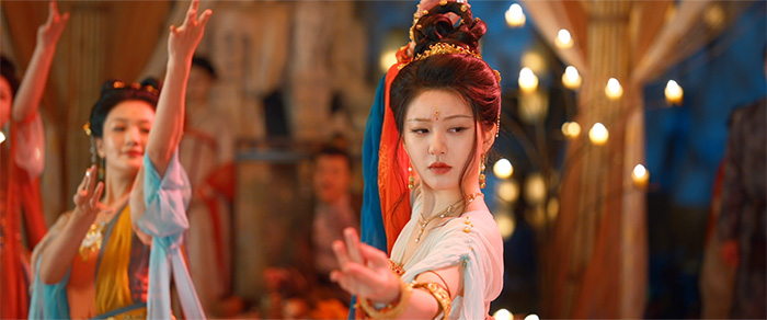 踊っているのは「舞蹈風暴」というダンスバトル番組で知名度が上がったコンテンポラリー出身の劉迦。劇中の舞踊は正統な敦煌舞とは言えないが手型やポーズで敦煌舞踊の雰囲気は出ている。