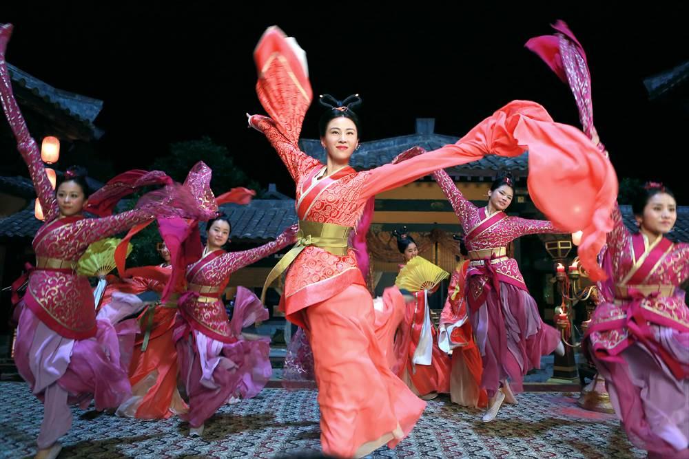 敦煌の壁画を元に生まれた舞踊。長い絹の布や琵琶などの楽器を用いることが多い。