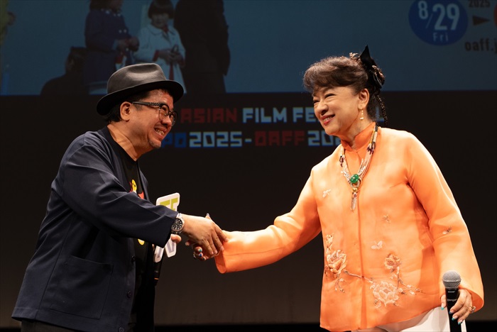 2025年8月29日(金)に第21回大阪アジアン映画祭が開幕いたしました。ABCホールにて開催されたオープニング・セレモニーには、上映作品68作品中、中国、香港、インド、日本、韓国、フィリピン、台湾、タイ、アメリカの19作品から、監督、出演者など35名を超えるゲストが登壇しました。続いて1970年の大阪万博を背景に、ジュディ・オングが主演を務め、華麗なミュージカル、アクションを融合させたスペクタクル・エンタテインメント映画『万博追跡』の舞台挨拶が開催され、主演・ジュディ・オングさん、本作の修復作業を手掛けた台湾の国家電影及視聴文化中心(TFAI)チェアマンのアーサー・チュウさんが登壇いたしました。